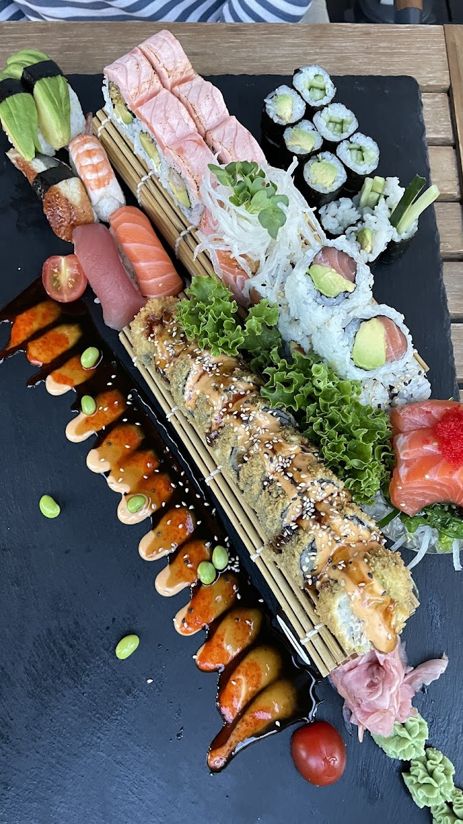 Wir haben Ihr Restaurant mittags am 14.3.25 besucht. Wir hatten eine sehr freundliche Bedienung, die uns in allen Dingen entgegengekommen ist. Das war deswegen sehr hilfreich, weil wir (außer, was Sashimi betrifft) nicht Sushi erfahren sind. Alles wurde sehr gut erklärt; Wein wurde zum Probieren angeboten und empfohlen. Sie haben aus der ehemaligen Fleischerei Maurer ein super asiatisches Restaurant mit tollem Ambiente gemacht. Und nun zum Essen. Die Dumplings Nr 72 haben gut geschmeckt, der Teig war sehr klebrig. Weiß aber nicht, ob das normal oder gewollt ist. Das Tatar S2 hatte keine asiatische Geschmacksnote und war eher matschig; Schade, da nützen auch kein eingelegter Ingwer/Sojasauce und Wasabi; die Thunfischstücke waren viel zu groß und hätten m.E. in kleine Würfel gehackt werden müssen. Hervorragend geschmeckt haben die S35 EBI Tempura gebackene Garnelen, Avokado und Sesam. Das S45 Sashimi-Mix hatte wie alle Gerichte sehr guten frischen Fisch, aber serviert auf einem riesigen Berg an Salat aufmontiert auf voluminösen Streifen von gehobeltem Rettich, der leider keine Schärfe hatte. Alles in Allem ein sehr schönes Restaurant, aber der asiatische Touch bei den Gerichten fehlt m.E. , zu sehr eingedeutscht. Das hat aber bestimmt bisher für viele andere in Wasserburg gefehlt.